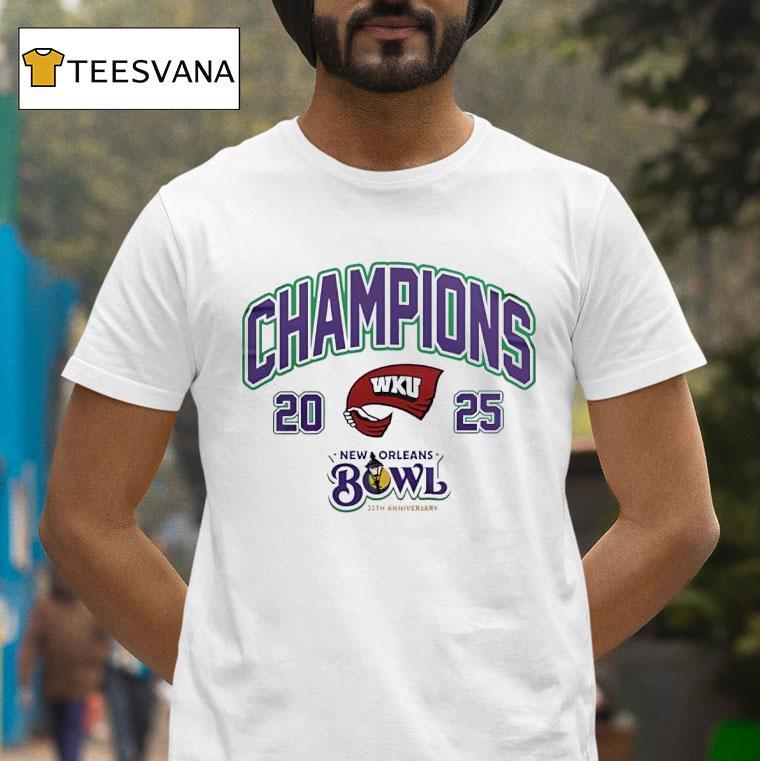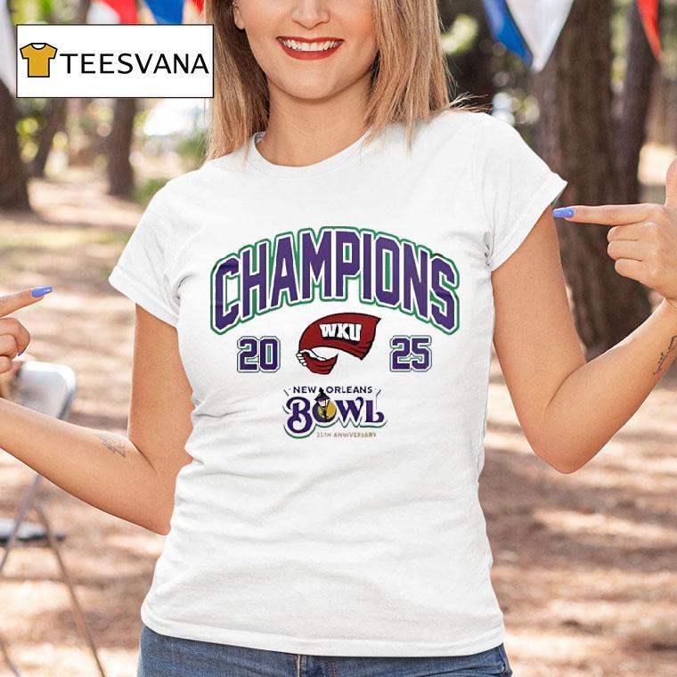 Chic comfort, all day with Western Kentucky Champions New Orleans Bowl 25th Anniversary 2025 Shirt, celebrate the milestone 25th anniversary of the Western Kentucky Champions New Orleans Bowl with this limited edition 2025 shirt. Show your support for the victorious team and their impressive feat on the field in style. Don’t miss out on this must-have piece for any true fan!