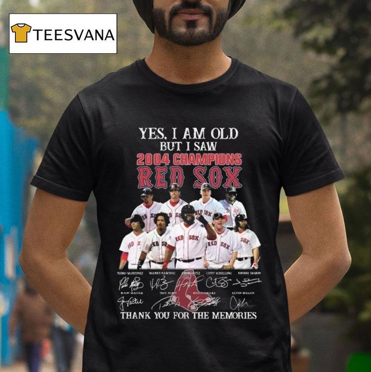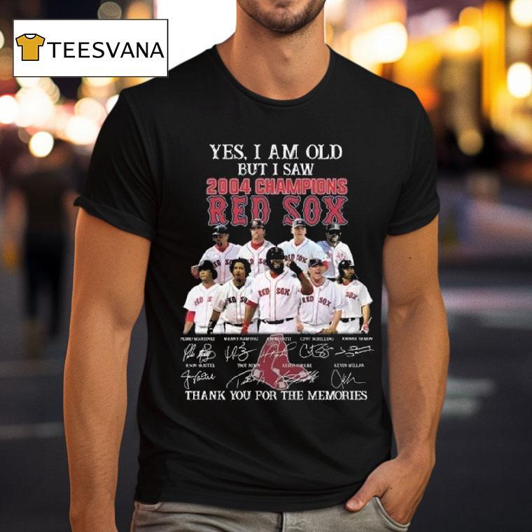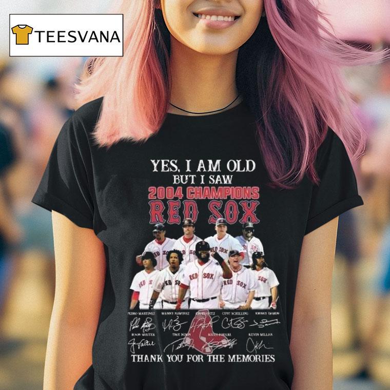 Fashion meets comfort with Yes I Am Old But I Saw 2004 Champions Boston Red Sox Players Signatures Thank You For The Memories Shirt, as I proudly display my 2004 champions Boston Red Sox players signatures shirt, memories of their victory flood back. Yes, I may be old, but I was lucky enough to witness their astonishing win and the camaraderie of the team. Thank you for the unforgettable moments, Red Sox.