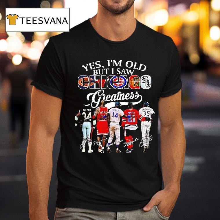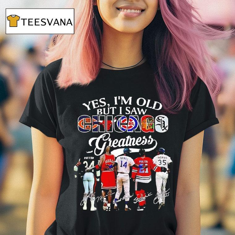 Casual chic, every day with Yes I’m Old But I Saw Chicago Greatness Jordan Payton Banks Mikita Thomas Shirt, as the years pass by, I may be considered old, but my memories of Chicago will always be filled with greatness. From witnessing the legacy of Jordan, Payton, and Banks, to the grace of Mikita and Thomas, my favorite souvenir remains my vintage Chicago sports shirt.
