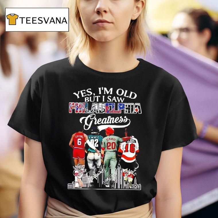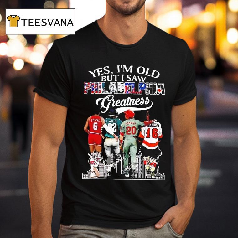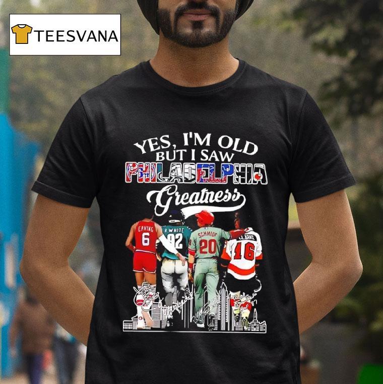 Wear it, love it, repeat with Yes I’m Old But I Saw Philadelphia Greatness Julius Erving Reggie White Mike Schmidt Bobby Clarke Shirt, as I slipped on my “Yes I’m Old But I Saw Philadelphia Greatness” shirt, memories flooded back of watching Julius Erving sky for dunks, Reggie White dominate on the field, Mike Schmidt’s home runs, and Bobby Clarke’s leadership. I may be older now, but those moments live on in this shirt.