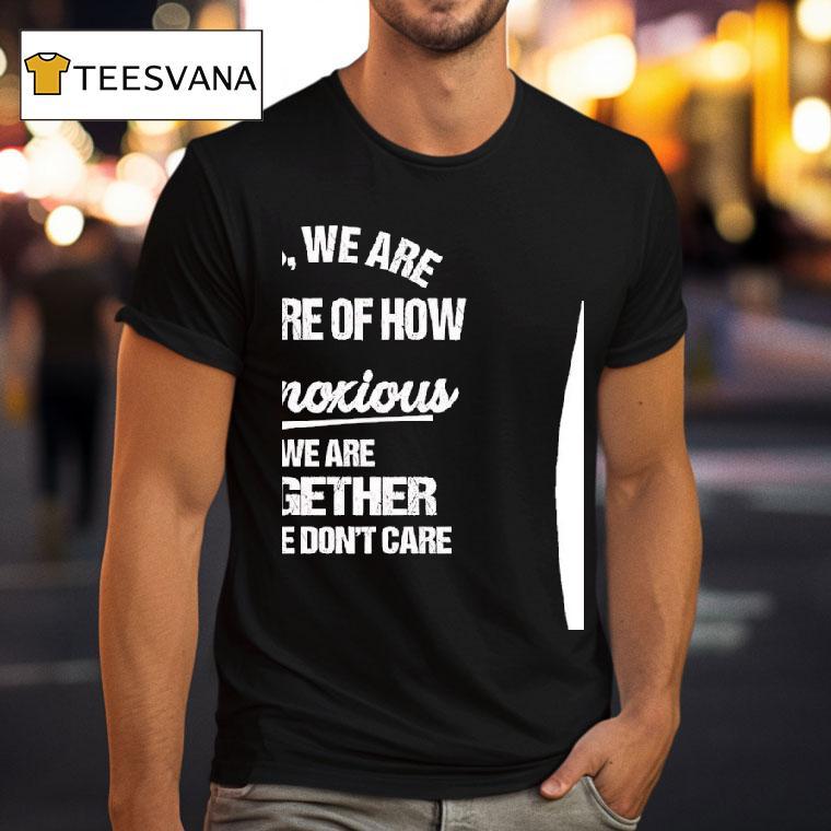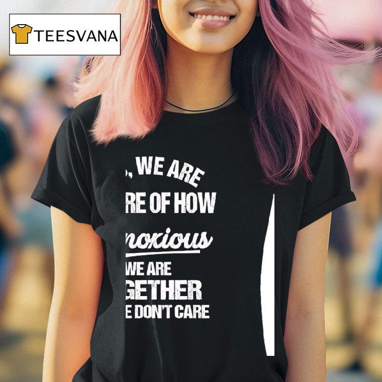 Simple style, big impact with Yes We Are Aware Of How Obnoxious We Are Together No We Don’t Care Shirt, are you tired of constantly being told how obnoxious you and your partner are? Well, embrace it with our “Yes We Are Aware Of How Obnoxious We Are Together No We Don’t Care” shirt. Perfect for couples who love to flaunt their love and unique bond.