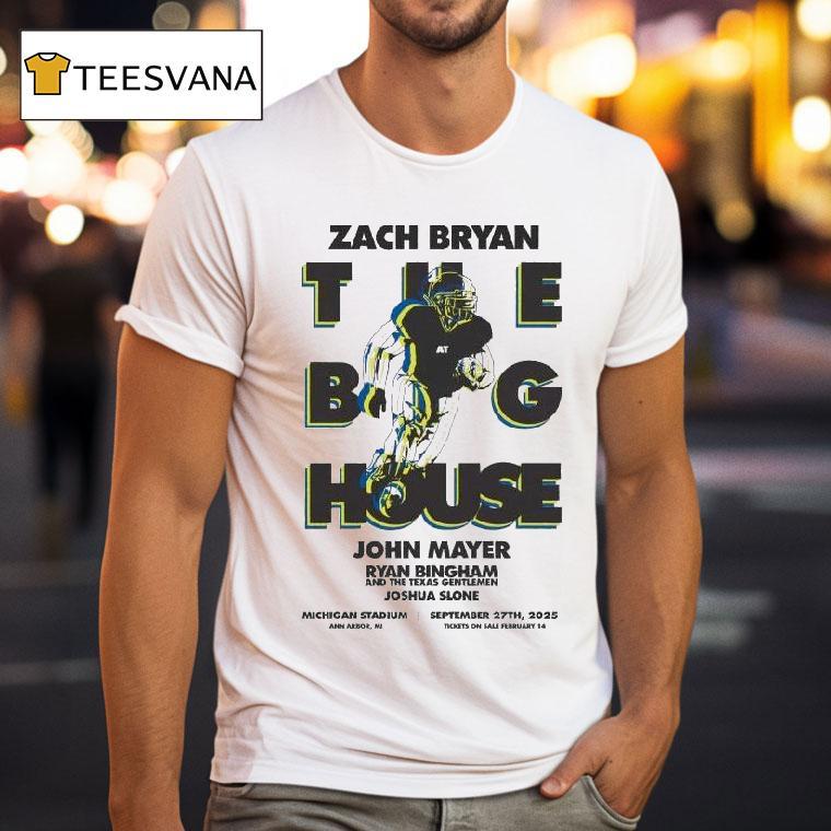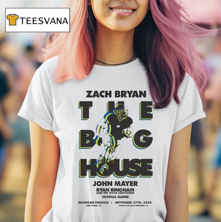 Timeless comfort, modern vibe with Zach Bryan The Big House John Mayer September 27 2025 Michigan Stadium Ann Arbor Mi Shirt, “Get ready for the ultimate music experience as Zach Bryan and John Mayer take the stage at The Big House. On September 27, 2025, the legendary Michigan Stadium in Ann Arbor, MI will be filled with the sounds of their chart-topping hits. Don’t miss out on this unforgettable performance and grab your commemorative shirt now!”